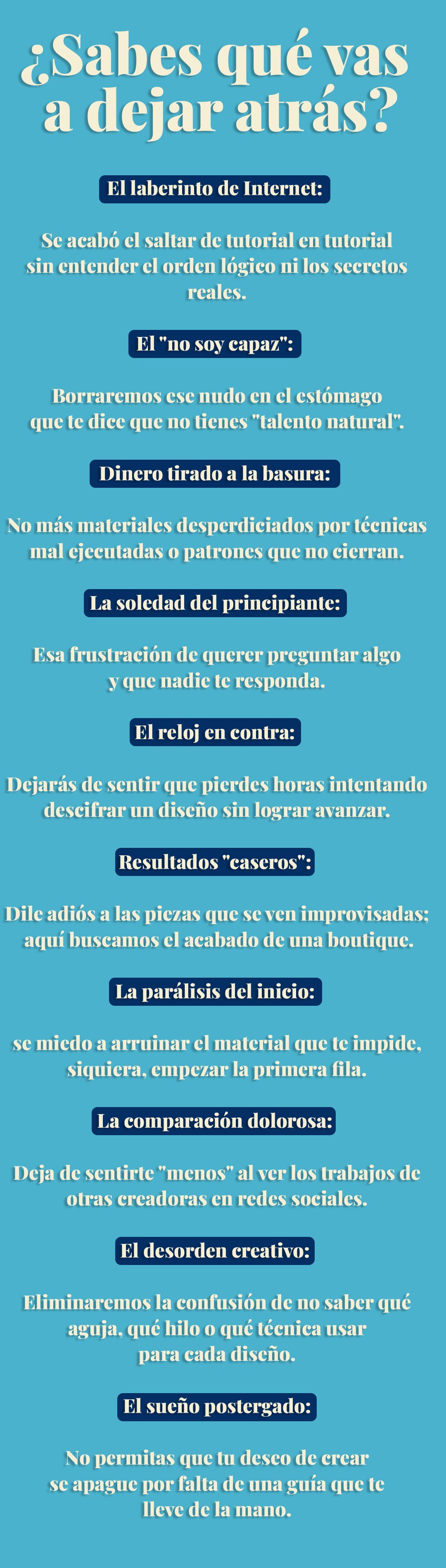 No tenés horarios fijos ni presiones de entrega. La promesa es que podés aprender la técnica base en solo 7 días dedicándole ratos libres, pero el acceso al contenido es de por vida. Podés avanzar a tu propio ritmo, ya sea una hora por noche o los fines de semana. Vos sos dueña de tu tiempo.